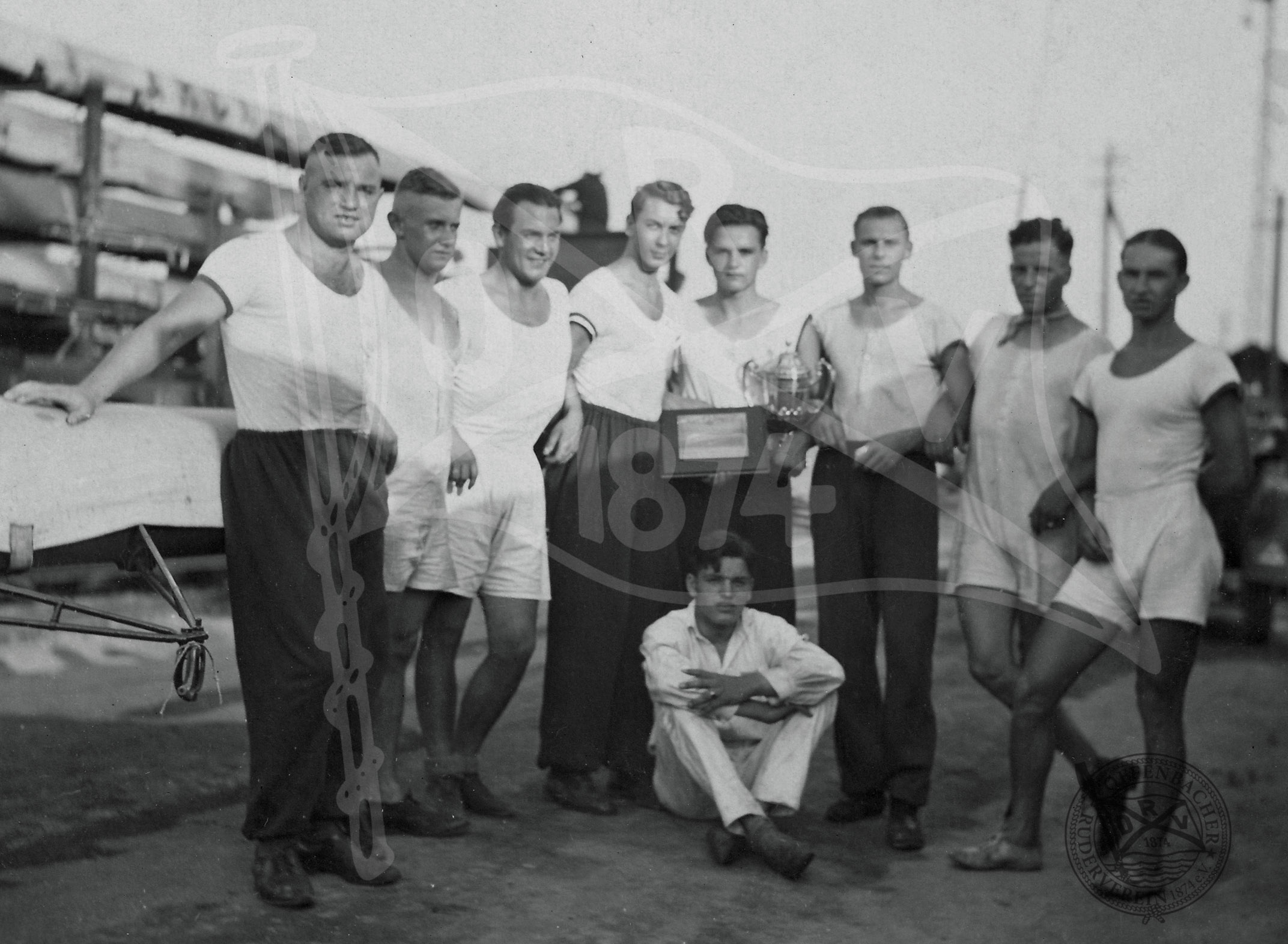 Sportlich hatten wir ein weiteres Jahr großer Erfolge. Mehr als 20 Siege brachten unsere Ruderer nach Hause. Hierbei wieder eine ganze Reihe erstklassiger Rennen. Auch hier wieder die Bootsbesetzungen mit teilweise alten, bewährten Namen, wie K. Insel, R. Wich, H. Freitag, W. Stein, L. Siegler, F. Heckelmann, H. Braun, F. Zimmermann, F. Wagner, F. Böhm und dazu F. Merz als Steuermann. Unter den Siegen findet man u. a. Preise von: