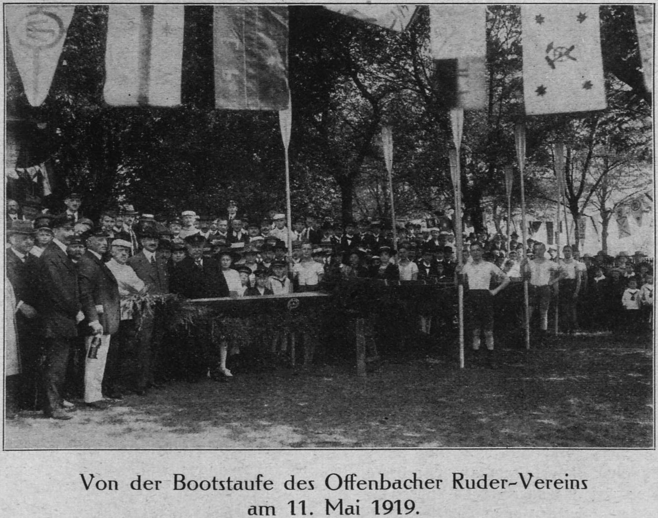 Bei den Offenbacher Vereinen ist starker Zugang an neuen Mitgliedern und der Betrieb lebhafter wie je. Der Offenbacher Ruderbverein bildet zwei Achter und unabhängig hiervon zwei Vierer aus. Das Bootshaus hat eine Ernerung durch Umbau der Fassade gefunden. Am Sonntag Vormittag fand die Taufe eines neuen, auf der Werft von Leux erbauten Gig-Achters statt. Der Vorsitzende Koch hielt die Weiherede in welcher er Vergangenheit und Zukunft der deutschen Ruderei besprach und die Jugend anspornte, ihre Kraft dem Vaterland zu weihen. Das Boot erhielt zu Ehren des Stifters den Namen Leo Bloch. Am Nachmittag fand eine Auffahrt der Vereinsboote statt.