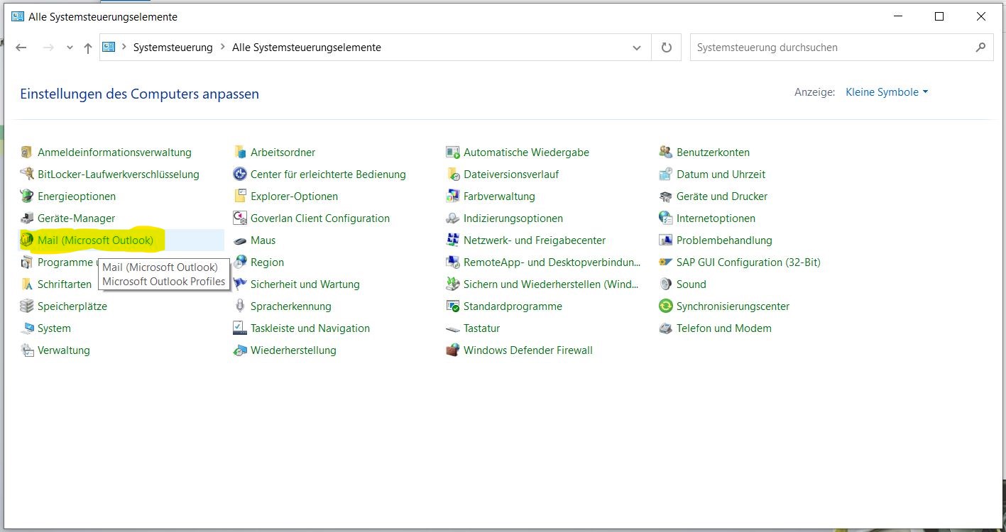 Erstellen eines neuen Outlook Profiles